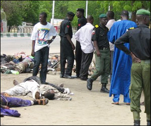 In other violence,Nigeria’s Vanguard newspaper reported that militants attacked security forces in Yobe state on Wednesday,and quoted police as saying that 43 sect members were killed in a shootout near the state’s second city,Potiskum. Police in Bauchi state have reported 42 people killed,including two soldiers and a police officer,67 hospitalized with serious injuries and 157 men arrested. President Umaru Yar’Adua,who has been criticized for leaving the country Tuesday night for a state visit to Brazil,insisted before he left that the situation was under control. The military itself keep referring to “mopping up” exercises even as a full-scale battle was taking place.