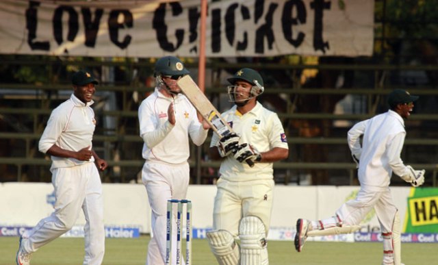 Brief scores: Zimbabwe 294 and 199 in 89.5 overs (T Mayowo 58,H Masakadza 44,R Mutumbami 29; R Ali 5/52,S Ajmal 2/56,A Rehman 2/40) versus Pakistan 230 and 158/5 in 49 overs (K Manzoor 54,Younis Khan 29,Misbah Ul-Haq 26*; T Chatara 2/29,Prosper Utseya 2/40).