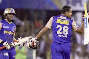 Chasing a modest 149,Pathan smashed the Chargers’ bowlers ball to all parts of the ground during his 34-ball 73-run unbeaten innings,while Lumb produced the early damage with a brisk 45 off 32 balls to power Rajasthan to 151 in 15.overs.
