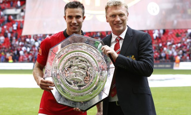 Robin van Persie scored twice to earn Manchester United a convincing 2-0 win over Wigan Athletic in the Community Shield at Wembley on Sunday. The Premier League champions outclassed the surprise FA Cup winners in the traditional English season curtain-raiser to give their new manager David Moyes an early trophy in his reign at Old Trafford. Van Persie powered home an angled header after six minutes and fired in a deflected shot just before the hour to see off Championship side Wigan who stunned Manchester City to win the Cup before being relegated last season. "It is always nice to score,especially at Wembley",the prolific Dutch striker told the crowd. "I am ready glad for everyone. Last year I did not score too many headers,so I have to improve on that. I believe in this team,we are the champions". Moyes will not be carried away at the start of his bid to emulate the glittering United career of his predecessor Alex Ferguson but he had reasons to be pleased after an indifferent pre-season. United started brightly and took the lead when Patrice Evra swung over a deep cross from the left and Van Persie arched his back to nod the ball firmly into the far corner of the net from 10 metres out. United right back Rafael limped off soon afterwards but Moyes's team continued to dominate possession and new winger Wilfried Zaha showed glimpses of his potential with a few quick turns and mazy dribbles. Man-of-the-match Michael Carrick pulled the strings for United in midfield alongside 39-year-old Ryan Giggs and Wigan struggled to retain the ball. An error by United defender Chris Smalling just before halftime allowed Wigan's James McClean to send in a dangerous cross but goalkeeper David de Gea did not have a save to make. Wigan worked tirelessly to close down United but Van Persie's second goal ended the match as a contest. The Dutchman controlled the ball on the corner of the penalty area before cutting back inside to drill in a fierce,20-metre shot which took a deflection before flying past Wigan keeper Scott Carson. Both managers made a raft of substitutions as the hot conditions took their toll and United could have extended their lead in the closing stages. Van Persie had words of encouragement for those United supporters concerned about Ferguson's departure,Moyes's failure to make major signings and the future of disaffected striker Wayne Rooney. "We have a chance to win five trophies this year and we want then all",said the forward who scored 30 goals for United last season after joining from Arsenal.