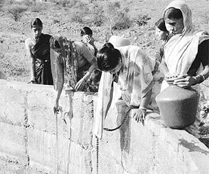 After Girija Bais death,the women got together to build a community well in the village. The National Bank for Agriculture and Rural Development,after a technical survey,granted the women a loan of Rs 5 lakh for digging the well,a motor pump set,an electric connection,pipelines,valves,distribution tanks and internal pipes. The women got together to implement the project by setting up the Sanyukt Mahila Samiti. We got work to start on the well,laid main and internal distribution pipelines,and got storage tanks built. Even when the well was being built,the men were not too happy with women taking the lead, says Anitabai Kushal Kendre,secretary of the Sanyukt Mahila Samiti.