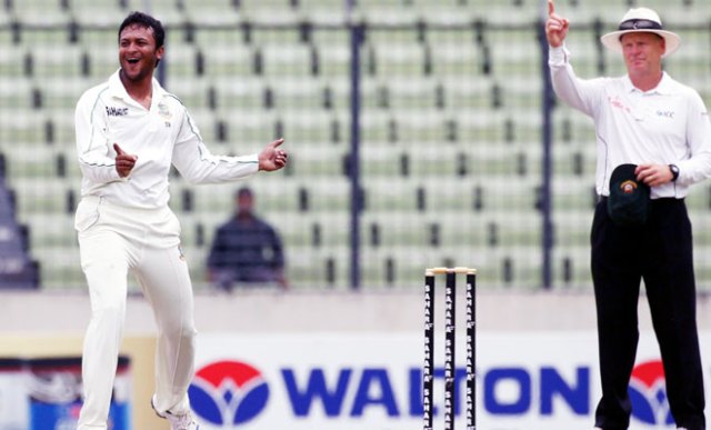 Former Bangladesh skipper Shakib picked up openers Peter Fulton (14) and Hamish Rutherford (13) before lunch and added the wicket of captain Brendon McCullum (11) in the afternoon.