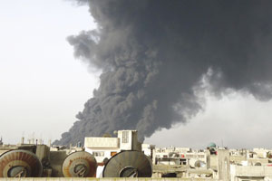 An explosion hit a major oil pipeline feeding a refinery in the Syrian city of Homs on Wednesday,near a large Sunni Muslim district under bombardment by government forces,residents said. A large plume of smoke was still rising from the pipeline,which runs near farmland at the edge of Baba Amro district,some two hours after the blast,they said. It was not clear what caused the explosion. The pipeline,which runs from the Rumeilan fields in the eastern Syriac Desert to the Homs refinery,one of two in the country,has been hit several times before during the 11-month uprising against President Bashar al-Assad. Footage from an activist's camera feeding live footage from Homs via the internet showed a dense plume of smoke rising behind houses in Baba Amro. The authorities have accused terrorist saboteurs of hitting the pipeline while opposition activists said the military,which began firing shells,mortar rounds and rockets into Baba Amro on Feb 3,has been hitting it by mistake.