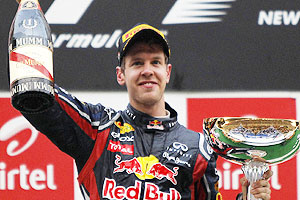 Starting from the pole position,Red Bull’s Vettel dominated the proceedings and scorched his way to victory with a timing of 1.27:249.