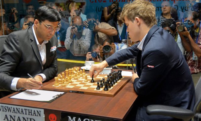 Magnus Carlsen scampered to his seat with less than 10 seconds left for the scheduled start of game seven,only barely avoiding a forefeit. Thereafter,there was nothing remotely dramatic about the action,with Viswanathan Anand and Carlsen agreeing to a draw by repetition after 32 moves and two hours of play. The passivity of the game could,in part,be attributed to the match situation. Anand was unable to break through with white pieces,but the draw would have bought him a certain measure of relief,coming as it did after successive losses in games five and six. After the last two games,it is nice to break this (string of) results. I was hoping to press him a little bit but was not able to, said Anand after the game. On the other hand,each draw only pushes Carlsen,two points ahead with five games to go,closer to the title. Moreover,a comfortable draw with black pieces is always welcome. I have the lead and this result suited me fine, was Carlsens assessment. For the third black game in a row,Carlsen responded to Anands e5 opening with the solid Berlin defence. In each of these games,Anand has tried different responses early in the game,but has been unable to achieve the kind of sharp positions he has been looking for. Monday was no exception,as black had the bishop pair in exchange for the doubled c pawns,and came out of the opening with no visible weakness. At around move 10,Anand could have chosen to castle on opposite sides and push a pawn avalanche towards blacks king. It may not have proved a great success,but would at least have given Carlsen something to think about. However,both sides chose to castle long. Still,Anand had the option to set in motion a speculative attack,pushing his g and h pawns up the board,making use of fact that whites pieces could turn their attention to the king side a little more easily than blacks. Anands response was a bit tentative,pushing just the h pawn (16. h5) ahead to free up the file for his rook. The threat was not acute enough for Carlsen to start scrambling his pieces and the Norwegian instead began a series of exchanges. Ten moves later,both sides just had a queen and a knight moving around each others symmetrical pawn structures. Carlsen chose not to torture Anand with another extended to-and-fro in the middle game,agreeing to repeat moves instead. Dull opening In some quarters,Anand was expected to go all in in game seven,considering he would have just two more whites in the five remaining games. Another rather dull opening from Anand leading to massive exchanges and a high probability of a draw. Seem to be better ways of going all-in.At this point who cares if you lose 10 in a row. You have to try and win! tweeted American GM Hikaru Nakamura,currently ranked No. 4 in the world. Anand has nothing in the opening phase,game after game. Would support @GMHikaru opinion of going all in this situation certainly, tweeted GM Teymur Rajabov,who was one of the participants in this years Candidates tournament. From Anands perspective,it was perhaps the loss in game six that put him on the defensive on Monday. In attempting to bounce back after his loss in game five,Anand tried complicating the position in game six,often resorting to sub-optimal moves to keep the position alive. Despite his efforts,the game descended into an even endgame and,well into the fifth hour,Anand blundered to lose. Another loss here would have been the equivalent of a knockout blow. Having steadied himself,Anand will have to start throwing a few punches of his own now,and soon. Game seven White: Anand,Black: Carlsen Opening: Ruy Lopez,Berlin defense 1. e4 e5 2. Nf3 Nc6 3. Bb5 Nf6 4. d3 Bc5 5. Bxc6 dxc6 6. Nbd2 Bg4 7. h3 Bh5 8. Nf1 Nd7 9. Ng3 Bxf3 10. Qxf3 g6 11. Be3 Qe7 12. O-O-O O-O-O 13. Ne2 Rhe8 14. Kb1 b6 15. h4 Kb7 16. h5 Bxe3 17. Qxe3 Nc5 18. hxg6 hxg6 19. g3 a5 20. Rh7 Rh8 21. Rdh1 Rxh7 22. Rxh7 Qf6 23. f4 Rh8 24. Rxh8 Qxh8 25. fxe5 Qxe5 26. Qf3 f5 27. exf5 gxf5 28. c3 Ne6 29. Kc2 Ng5 30. Qf2 Ne6 31. Qf3 Ng5 32. Qf2 Ne6 1/2-1/2 Match score: Carlsen 4.5 - Anand 2.5 game 8,live on DD Sports @ 3pm Tried to press,couldnt make it happen Chennai: After managing to hold Carlsen to a draw after two straight losses,Anand spoke about how it was nice to break the run of losses and that the opening meant that it was difficult to get an open,sharp game. Carlsen said he was of the opinion that the effect of game five carried over to game six,and that was a part of the psychological aspect of playing tournaments. On the game Anand: I chose a line both of us have played quite a bit in the past. You get a slow kind of maneuvering game. After castling I thought I may have been able to press a little bit,I understand it may not have been huge but somewhow I was not able to make it happen. I thought the rook on the h file would give me something,but swapping all the rooks would give him some kind of counterplay. Carlsen: There are many different ideas,but whatever you play,it is a bit slow and the game goes on. I thought I was only a little bit worse but nothing major. My pieces are well developed and there are no weaknesses,so I should not be in any major trouble. On the rest day Anand: The weather (it rained heavily all through Sunday) doesn't allow you to do much. So I stayed at the hotel and did some work. Yeah,a bit of sport. Carlsen: We played a bit of football and basketball,not too successfully,but it was fun. On the quick draw Anand: After the last two games it is nice to break this result. But I was hoping to press him a little bit but I was not able to,to be honest. Carlsen: I was not disappointed with the short draw. I have the lead and I won the last game with black. This suited me just fine. On the effect of a loss Carlsen: There are some psychological aspects. Clearly the outcome of Game 5 influenced Game 6. That is unavoidable I think in matches. You just try to move on as best as you can,but it is not easy.