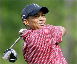 Champion here for three consecutive years from 1999,Woods then birdied the par-five 15th after reaching the green in two and two-putting to move into a tie for the lead. Although Byrd tumbled backwards with a three-putt double-bogey at the tricky 14th,Woods faltered with a bogey at the par-three 16th after being bunkered off the tee. That left him joint top at 10 under,level with Love,Furyk and Byrd,who knocked in a six-footer to birdie the 15th. Furyk squandered a golden opportunity to snatch the outright lead when he missed a six-foot birdie putt on 15. Woods took advantage moments later,hitting his second shot to nine feet at the 17th and nervelessly rolling in the birdie putt to edge a stroke in front before his grandstand finish.