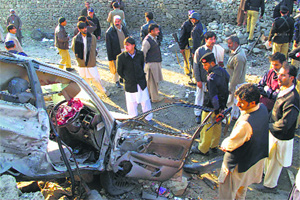 Taliban militants on friday hit Pakistans NWFP as a suicide bomber detonated his explosive-laden car outside a mosque after Friday prayers at Timergarah in Dir district,killing 12 people,mostly policemen. The bomber struck as the people were leaving the mosque near the police lines after prayers and most of the victims were policemen from the nearby station,police officials said.