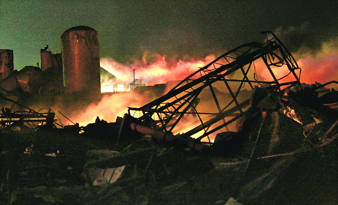 It began with a smaller fire at the plant,West Fertilizer,just off Interstate 35,about 20 miles north of Waco that was attended by local volunteer firefighters,said US Representative Bill Flores. The fire spread and hit some of these tanks that contain chemicals to treat the fertilizer, Flores said,and there was an explosion which caused wide damage.