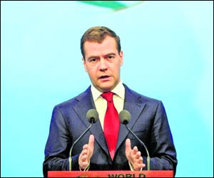 Medvedev suggested that Russia would like to see more substantive change including an end to such an oversize role for the dollar. Russias economic critique of the dollar,continuing for several years,comes alongside increased political tensions with the United States. Yet Russias central bank,too,keeps about 50 per cent of its reserves in dollars. To stabilize exchange rates,Medvedev said,governments should create a new reserve currency. Russia has backed an expanded role for special drawing rights units of the International Monetary Fund.