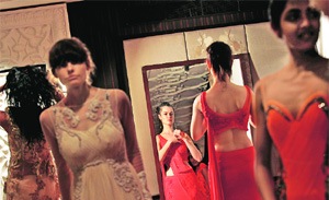 But on Tuesday,unending yards of the fabric had miraculously mutated into an almost-ready collection. Sure,one tube blouse was loose,one sari-gown was tight,a jacket needed to be fitted and the shoes were much awaited. Yet,as a model said when she came out of the trial room wearing a white ensemble,I love it,Gaurav.