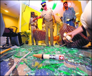 About 25 party activists barged into the common office of the two channels in suburban Vikhroli in the financial capital,armed with baseball bats,cricket stumps and iron rods. They broke glass facades,office equipment and assaulted some employees before fleeing the spot. In Pune,they attacked the outdoor broadcast van of the channels and damaged it,police said.
