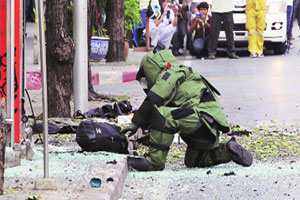 In Thailand,Tuesdays bizarre sequence of explosions began when explosives apparently detonated by accident,blowing off part of the roof of the Bangkok house.