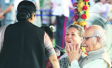 President Pranab Mukhejees At Home last year had caused some heartburn in the opposition BJP over seating arrangements as senior leaders like L K Advani and Sushma Swaraj had to stand in an enclosure while Congress president Sonia Gandhi sat next to the President and the Prime Minister in the VVIP enclosure. Making amends this year,the Rashtrapati Bhawan ensured this time that Advani and Leaders of Opposition in the Lok Sabha and the Rajya Sabha,Sushma Swaraj and Arun Jaitley,sat in the VVIP enclosure. Advani and Sonia were seen exchanging notes with each other.