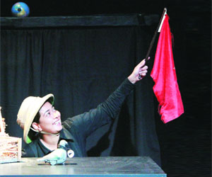 Ghoshs brand of theatre,called Object Theatre,uses found objects items that arent created specifically for a play but are,instead,an integral part of daily life. A Birds Eye View uses familiar objects such as childrens toys and kitchen utensils to create a metaphor of a game, says Ghosh. The hour-long play is non-verbal,but Ghosh uses the objects to speak volumes. In one scene,a pair of big boots is training several little shoes in the art of clandestine warfare. The little shoes are strung up on a puppet bar,which big boots manipulates. The storyline switches from satire to humour to plain ridiculous,as Milu attempts to give the audience a birds eye view into their own world.
