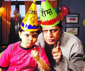 Handa-Bhonda is anything but a film for children though it is crowded with a cast full of kids of all shapes and sizes,who are either precocious or stupid. Aritra as Bhonda,almost an overnight star thanks to his anchoring a reality show for children,is somewhat in control in this film. But the lines he has been given to deliver,even as Bhonda,are not for children. Supriya Devi as the stinking rich woman,whose heart bleeds for poor children,is good. But one wishes she had got rid of those plucked eyebrows. Paran Bandopadhyay as Handa-Bhondas elderly neighbour,who lives in constant fear of being spat on by Bhonda every morning,is wonderful. The bald-headed stooge of the greedy boss in Handas office is mind-blowing with his kids lisp and his rustic accent. Mithun is quiet,cool and controlled in the first half. In the second half,when his sons soul has entered his body,he is incongruous and looks terrible. The first half is grindingly slow while the second half does not have much to say,so is filled with two terrible item numbers performed by an over-aged Mithun with a female chorus in skimpily-clad costumes.