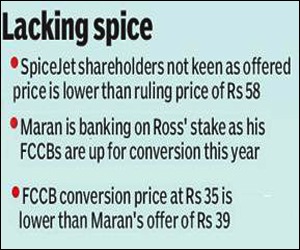 Maran is reported to be banking on the stake held by US billionaire and private equity investor Wilbur Ross in the company. Ross has invested $68 million in SpiceJet in July 2008 through foreign currency convertible bonds and has the choice to either convert them or redeem them as bondsa choice that he has to exercise by this December.
