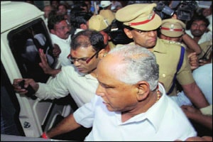 Yeddyurappa dodged an arrest warrant issued by a Lok Ayukta court and surrendered before the court late in the evening. He was then placed under arrest. His case will be heard on October 22.