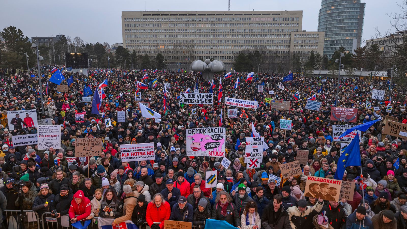 Fico’s recent remarks that Slovakia’s foreign policy orientation could involve leaving the European Union and NATO contributed to the anger of protesters. “Resign, resign,” was the the clear message to the premier. “Slovakia is Europe,” they chanted.