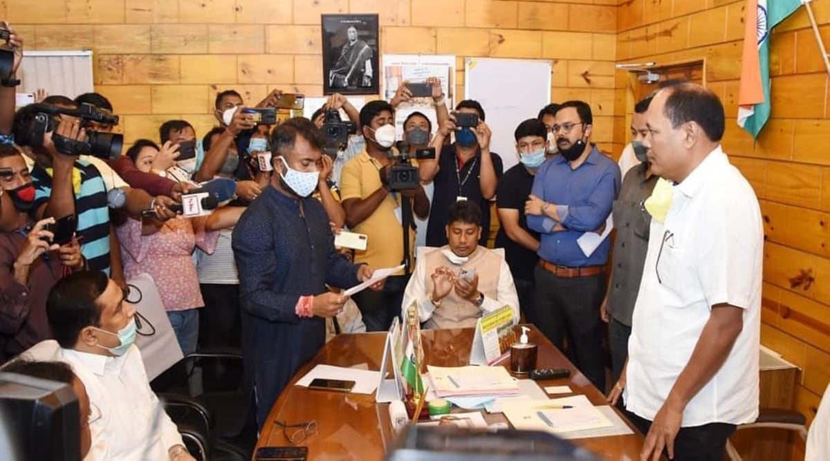Rupjyoti Kurmi tendered his resignation to Speaker Biswajit Daimary at his assembly office. (Photo: Twitter/@jayanta_malla)