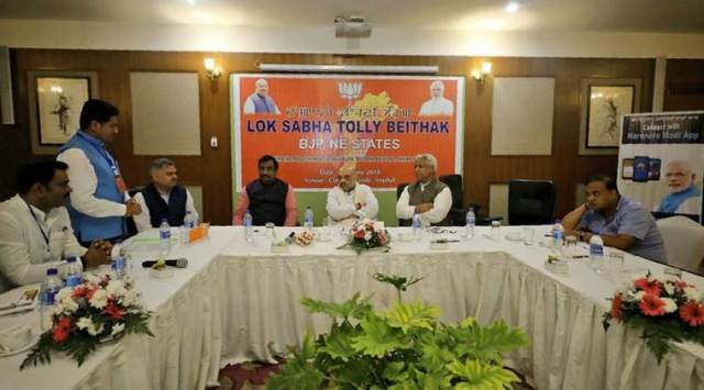 BJP chief Amit Shah on Saturday chaired a meeting with the party’s North East leaders in Imphal to chalk out a strategy to “uproot the Congress” from the region. The meeting, which was held under the slogan “Congress-mukt Bharat (Congress-free India), began at 11 am and will continue till midnight.