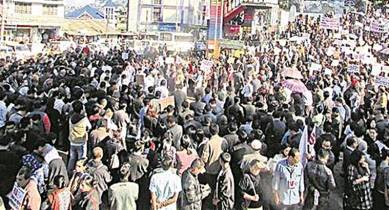 While Governor Acharya has assured the protesting state government employees that he would seek for a permanent solution with the Centre on the problem of taxation imposed on Government departments and its agencies, the placards that the protesters carried while submitting the memo to the Governor conveyed the general mood in Nagaland. Two of the placards read – “Action Taken Under Duress Cannot Be Termed As Wilfulness and Anti-National” and “Forced Taxation Is Not Equal To Aiding and Abetting”.