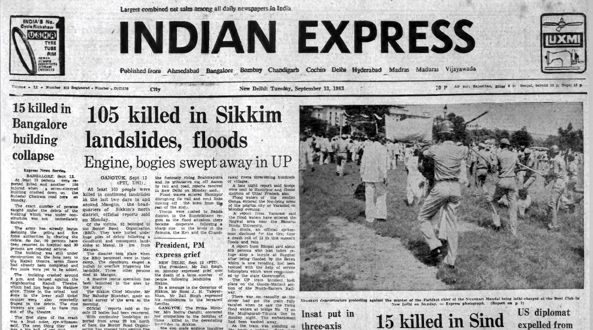 Opinion September 13, 1983, Forty Years Ago: Sikkim Landslide