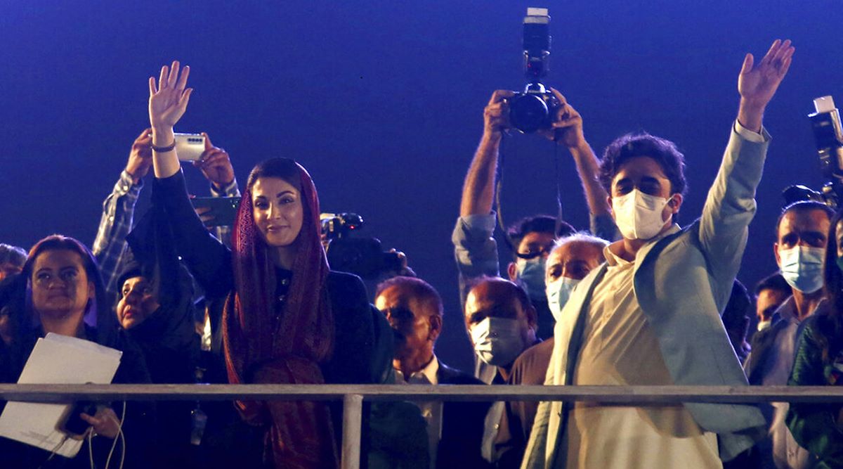 Leaders of opposition party 'Pakistan Democratic Movement' Maryam Nawaz, second left, and Bilawal Bhutto Zardari, right, wave to their supporters as they arrive to attend an anti government rally, in Karachi, Pakistan. (AP) In the aftermath of the dramatic incidents in Karachi on the night of October 18, where drama unfolded with arrest of Safdar Awan (husband of Pakistan Muslim League-N leader Maryam Nawaz) and a host of Sindh Police officers went on leave owning to the reported high-handedness of federal Pakistan Rangers with their Police chief, an equally dramatic act was played out by a central minister the next day. Shibli Faraz, the investment banker turned Tehrik–e-Insaf politician and Information and Broadcasting minister in Imran Khan’s cabinet, gave an elaborate press conference and said that opposition leaders were acting like “Benarasi Thugs” indicating their opportunism and skulduggery. He also kept mentioning their playing to the tunes of the “enemy country” across the border, where their actions had led to chest thumping in Indian news-channels, at the prospect of an imploding Pakistan.