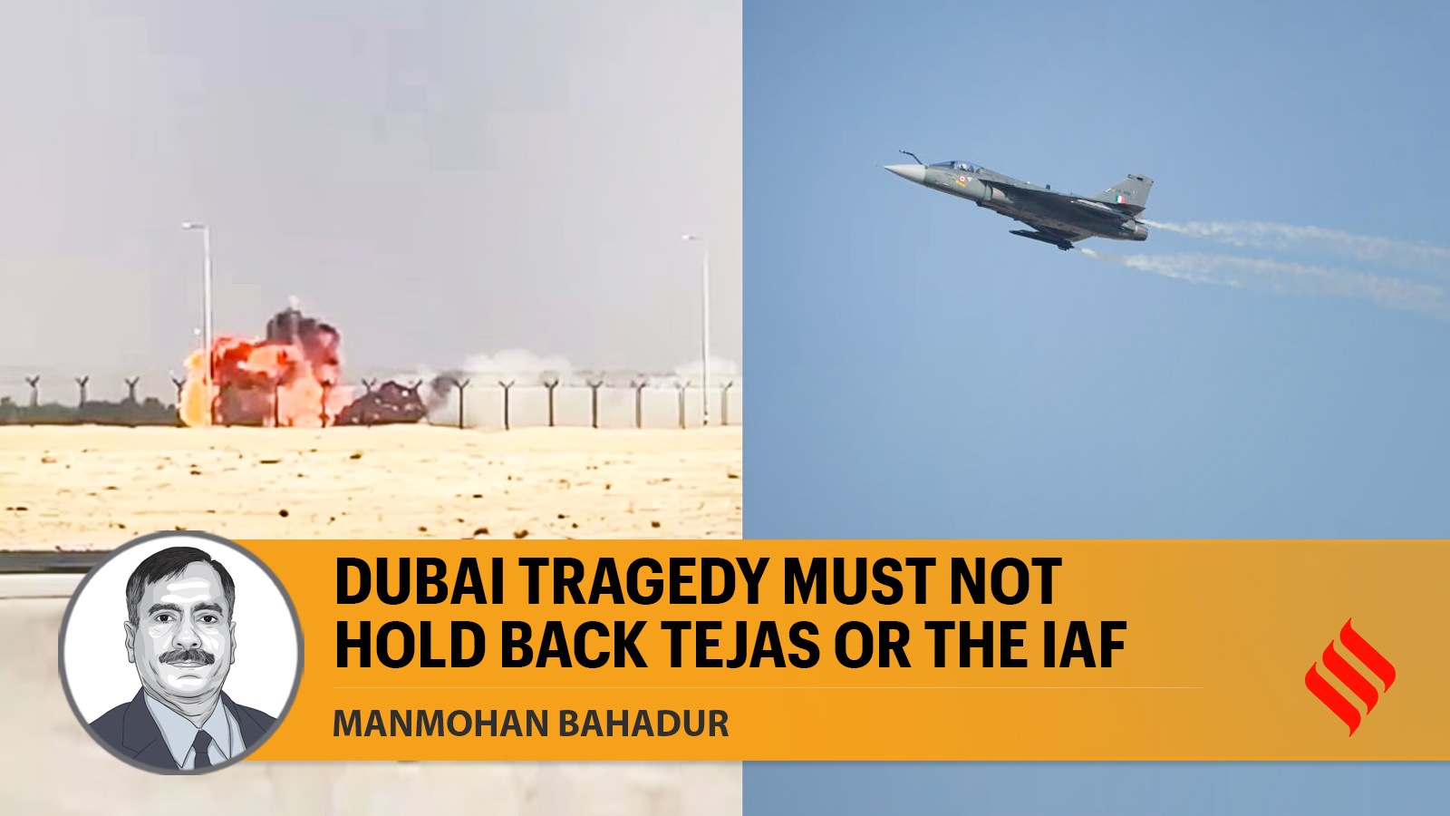 Smoke and flames billow out after a fighter jet Tejas of the Indian Air Force crashed during an aerial display at the Dubai Air Show. The pilot died in the accident, according to officials. (PTI/AP) The crash of a Tejas aircraft in an airshow in Dubai is unfortunate for three reasons. First, the country lost a frontline pilot who was doing his duty of showcasing our indigenous fighter. He would have been an ace aviator, as only the exceptional ones are given display flying duties. Second, he has left behind a grieving family and equally sad compatriots who would, as this is being written, be doing what they can to console his near and dear ones. And third, an international airshow setting is the worst place for such a mishap – the country was trying to publicise the aircraft, and several cameras were recording its performances, and our adversaries were watching. That said, the show must go on. What needs to be done to get back on track? Four things need to be done.
