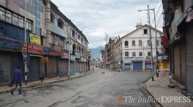 A view of Lalchowk in srinagar.restrictions continue across kashmir valley.Express photo by Shuaib Masoodi
