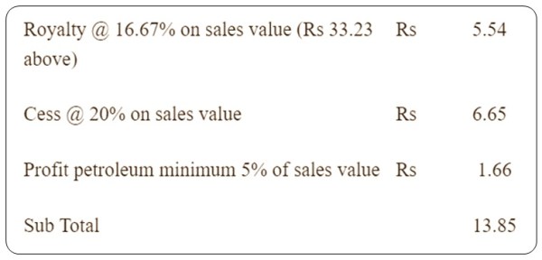 If one also adds income tax also to the revenue of GOI from the oil fields, the GOI receives almost Rs 69 to Rs 70 per litre of petrol sold (from domestic production) which is over 72 per cent of the retail price.