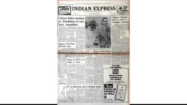 A look at the front page of The Indian Express, published onApril 26, 1977, Forty Years Ago.