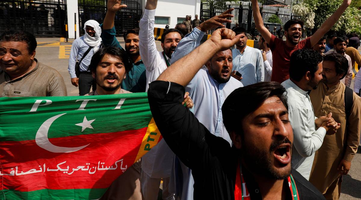 Imran Khan’s party workers outside parliament building in Islamabad. (Reuters)
