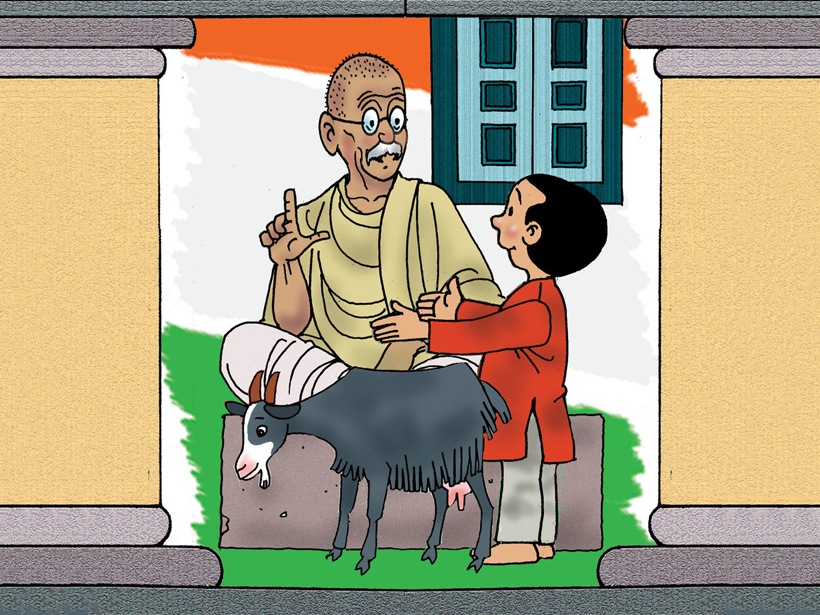 “Ah yes,” Gandhiji looked thoughtful. “But there is a problem. If you go with me, who will take care of Binni? After walking for so long, I will become weak. When I come back, I’ll need to drink lots of milk to become strong again.”