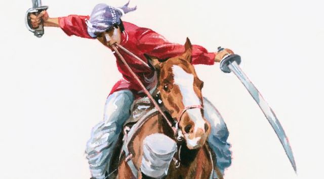 Illustration of Rani of Jhansi on horseback attacking a British soldier. (Source: Getty Images)