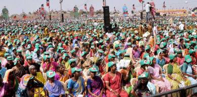 Dharmapuri: AIADMK Supporters at an election campaign meeting of Tamil Nadu Chief Minister and AIADMK Supremo J Jayalalithaa ahead of Tamil Nadu legislative assembly elections 2016, in Dharmapuri. (Source: PTI Photo)