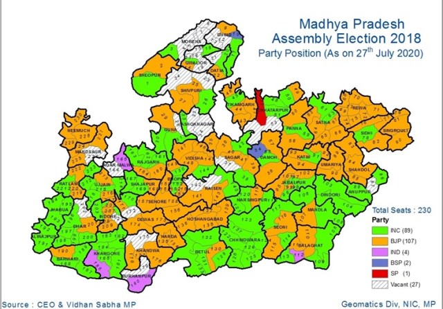 May 2020: The number of vacant seats up after a faction of Congress MLAs resign
