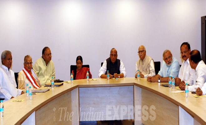 BJP Parliamentary Board members,including L K Advani,Sushma Swaraj,Arun Jaitley,Murli Manohar Joshi,Rajnath Singh and others participated in the meeting.