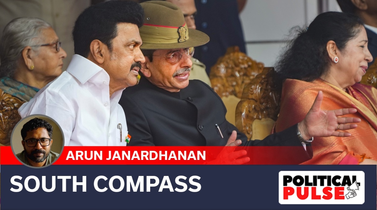 Governor Ravi has had a series of run-ins with the DMK government since his appointment, even treading into the tricky territory of identity politics and sub-nationalism, which holds deep resonance in the state. He has questioned the DMK government’s advocacy of a “Dravidian Model”, suggested that the state be renamed Tamizhagam, dropped the state emblem from an invitation and, more prosaically, sat on Bills.
