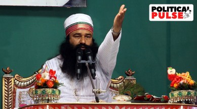 Sentenced to life on two separate counts of rape and murder and jailed in Haryana’s Sunaria prison, Rahim is out on parole – coinciding with another round of elections in the state, this time an Adampur bypoll and coming panchayat polls. However, that makes little difference to his followers, men, women and children, around 600 of whom are at the ashram today to listen to his sermon and bhajan, sitting on white sheets, in separate pavilions.