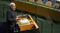 Prime Minister Narendra Modi addresses the 69th session of the United Nations General Assembly at UN headquarters in New York on Saturday. (Source: PTI)