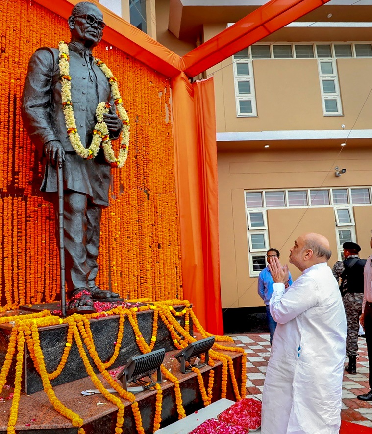 Union Home Minister Amit Shah pays tribute after unveiling a statue of Loknayak Jayaprakash Narayan, in Sitab Diara, Bihar. (PTI)