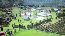 Departing from protocol, Prime Minister Narendra Modi, the event’s star attraction, will be seated on a special dais erected on the left of the main dais, where CM-designate Devendra Fadnavis and his cabinet will be sworn in by Governor Vidyasagar Rao on Friday. Modi had attended the swearing-in of Haryana Chief Minister Manohar Lal Khattar too.