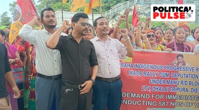 The Tripura Tribal Areas Autonomous District Council’s ruling TIPRA Motha party demonstrated in parts of the state on Wednesday accusing the BJP-IPFT government of deliberately delaying elections to the village committees under the council.