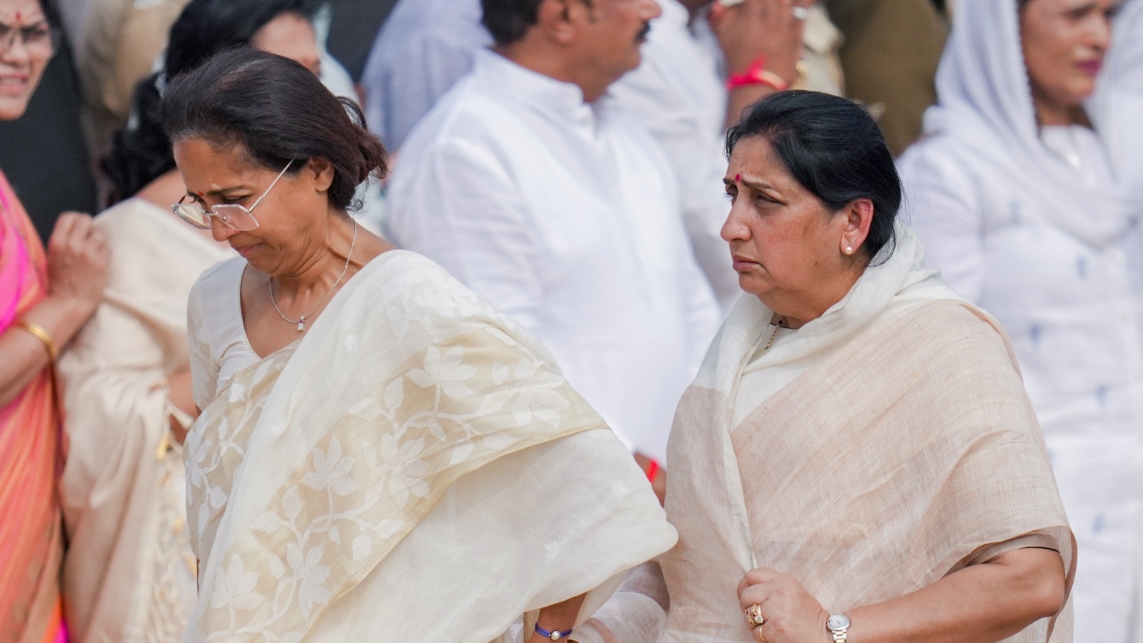 Ajit Pawar’s wife Sunetra Pawar (right) with NCP (SP) MP Supriya Sule at his funeral in Baramati, Thursday. (PTI) Amid a push for the reunification of the Nationalist Congress Party (NCP) and speculation that the Sharad Pawar-led NCP (SP) faction may “join the government” following the merger, the other parties in the Opposition INDIA bloc have adopted a wait-and-watch approach.