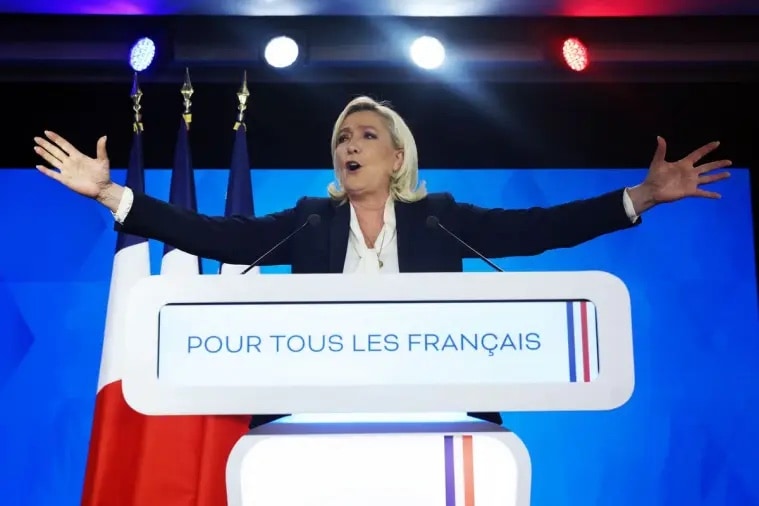 Marine Le Pen at an election rally (Reuters)