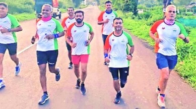During the run in honour of Milkha Singh at Kolhapur. (Express Photo)
