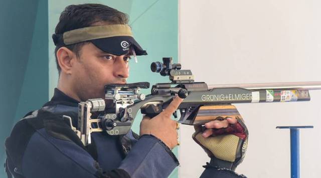 Indian shooter Sanjeev Rajput competes in the qualification 50m rifle men’s shooting at the 18th Asian Games Jakarta Palembang 2018, in Indonesia on Tuesday, Aug 21, 2018. (PTI Photo)