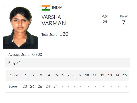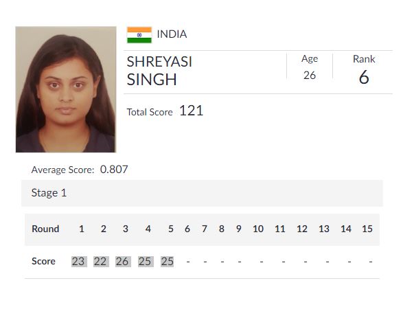 Varsha Varman scores 26 in her first round - Shreyasi Singh scores 22 in the second series.
