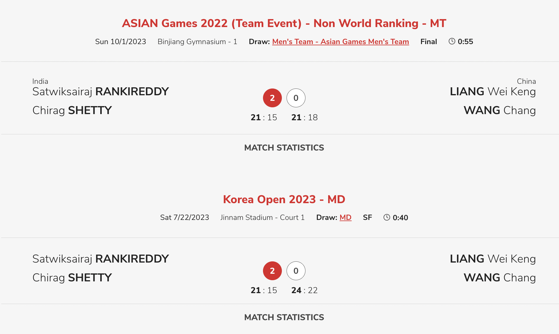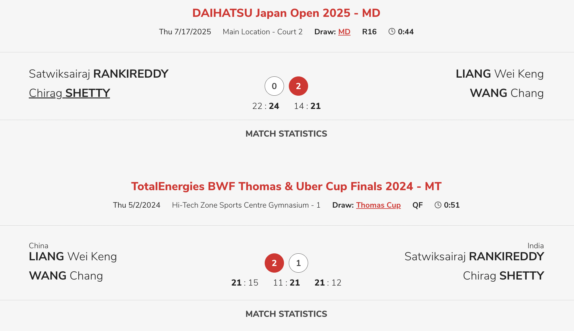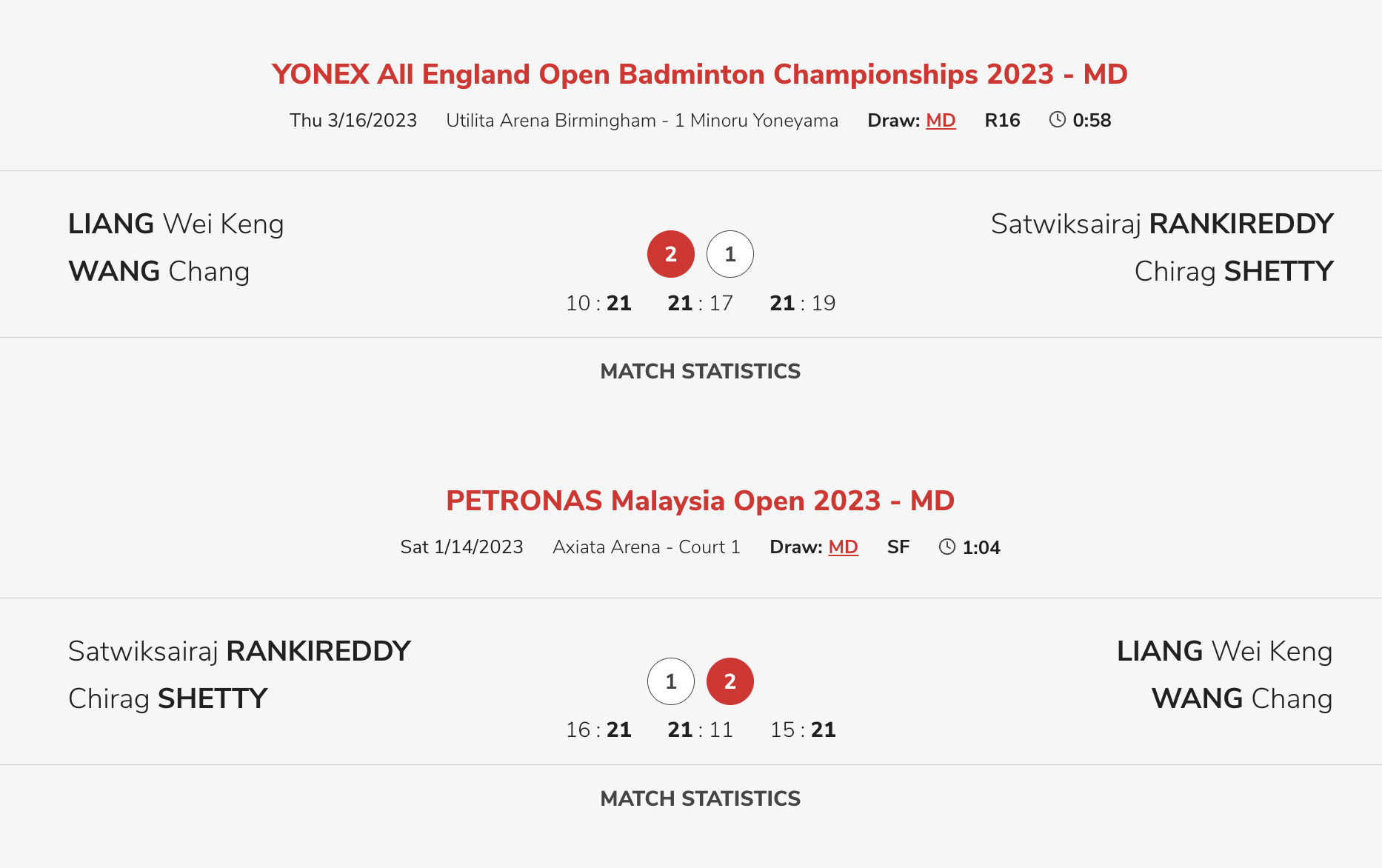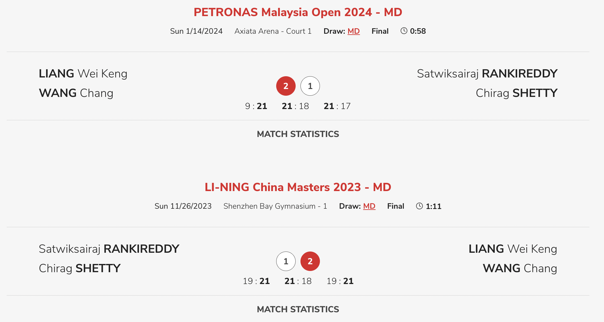 It's been an ever-entertaining rivalry between Satwik-Chirag and Liang-Wang. And today is the 9th meeting, with Liang and Wang leading 6-2.