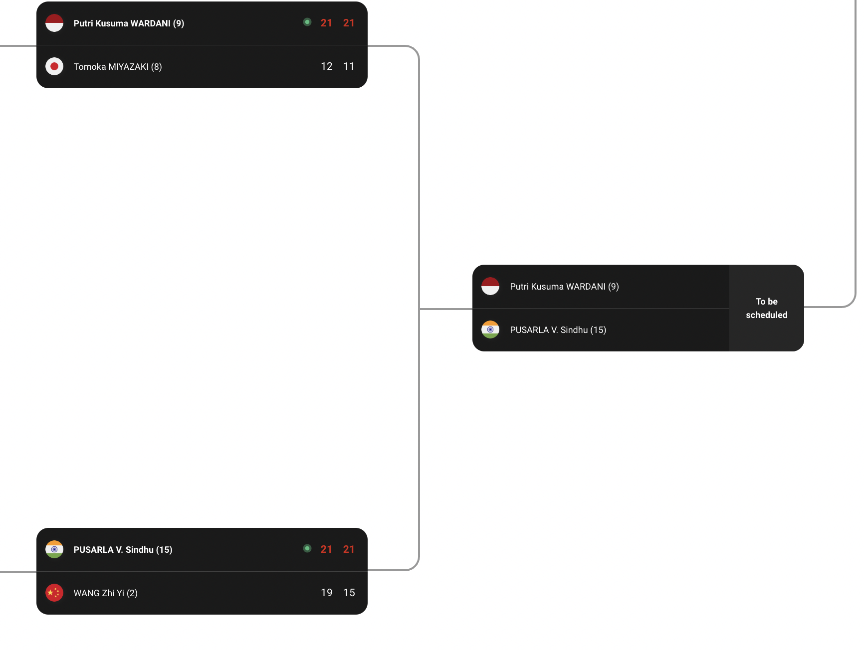 Semifinal: [5] PV Sindhu 21-7 / 21-14 Chen Yufei [4]